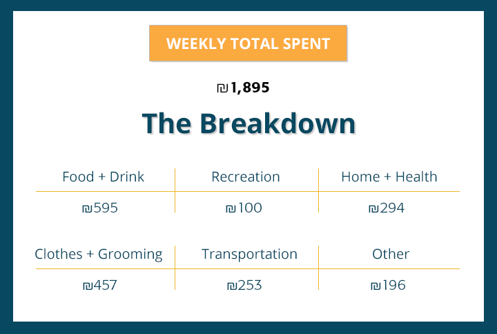 Welcome to Israel Money Diaries. We are asking Olim how they spend their hard-earned money during a one week period — and we’re tracking every last shekel. If you are interested in joining us in this project, please contact [email protected].