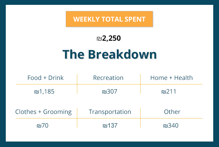 Welcome to Israel Money Diaries. We are asking Olim how they spend their hard-earned money during a one week period — and we’re tracking every last shekel. If you are interested in joining us in this project, please contact [email protected]