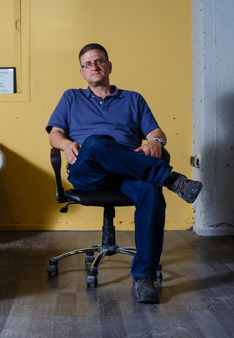 Oleh Jerry Glazer strikes a pose in his escape room.