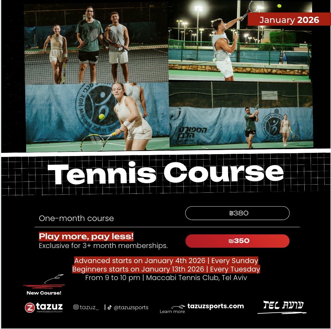 Tennis Course: https://www.tazuzsports.com/tennistelaviv