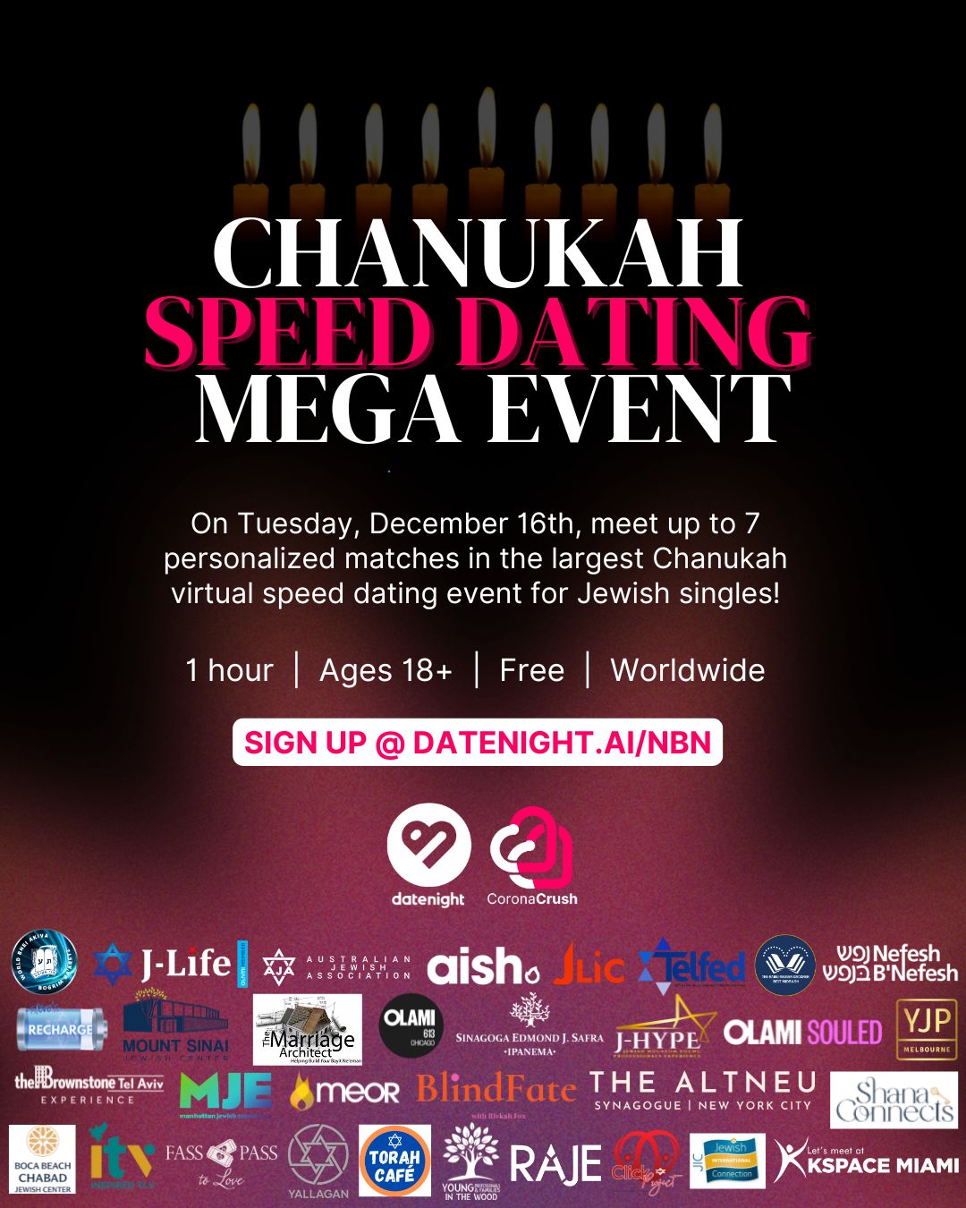 This Chanukah, light up your love life with the biggest singles event of the season! Thousands of Jews will join from across the globe.