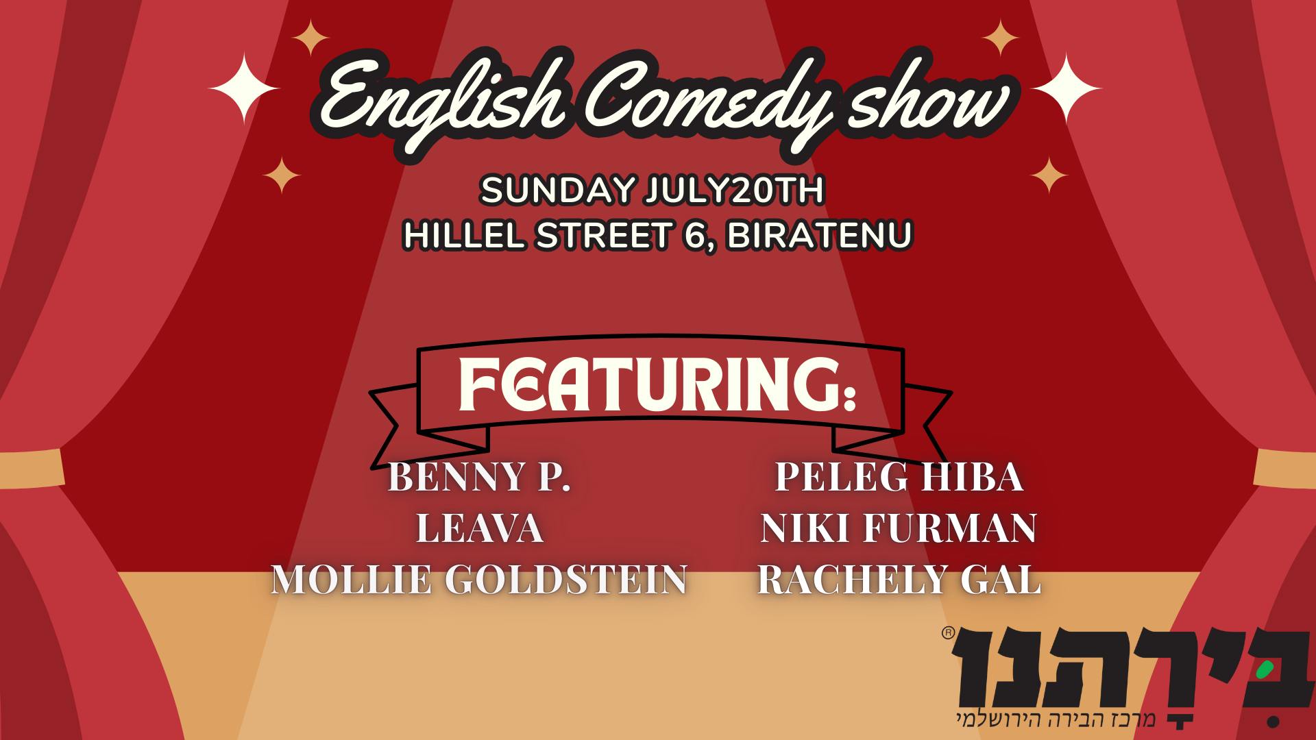 English Comedy Show at Biratenu Sunday | July 20th | 20:00Biratenu| Hillel St 6, Jerusalem Come laugh , drink and experience Jerusalem like tourists with a sense of humor. Performances by: Benny P. Leava | Mollie Goldstein | Peleg Hiba | Niki Furman | Rachely Gal Free entry! Date Jul 20 2025 Expired! Time 8:00 pm Location Biratenu Hillel St 6, Jerusalem Category Jerusalem Performance Organizer Biratenu Share this event