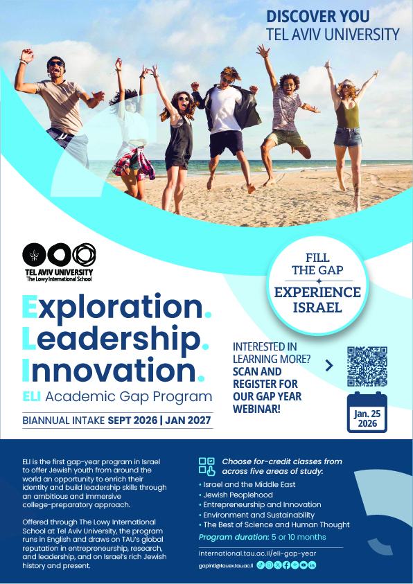 Exploration, Leadership, and Innovation (ELI) Gap-Year Program is a pre-college program for high school graduates that offers a once-in-a-lifetime opportunity to spend your gap year in Israel enjoying rich academic immersion, leadership training, and extracurricular activities in an environment centering on engagement with Jewish culture and the Startup Nation.