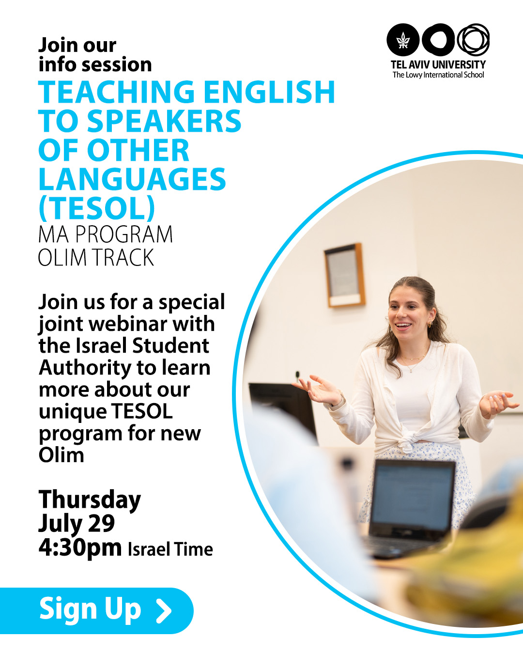 MA Teaching English to Speakers of Other Languages (TESOL) Olim Track – joint webinar with Minhal HaStudentim