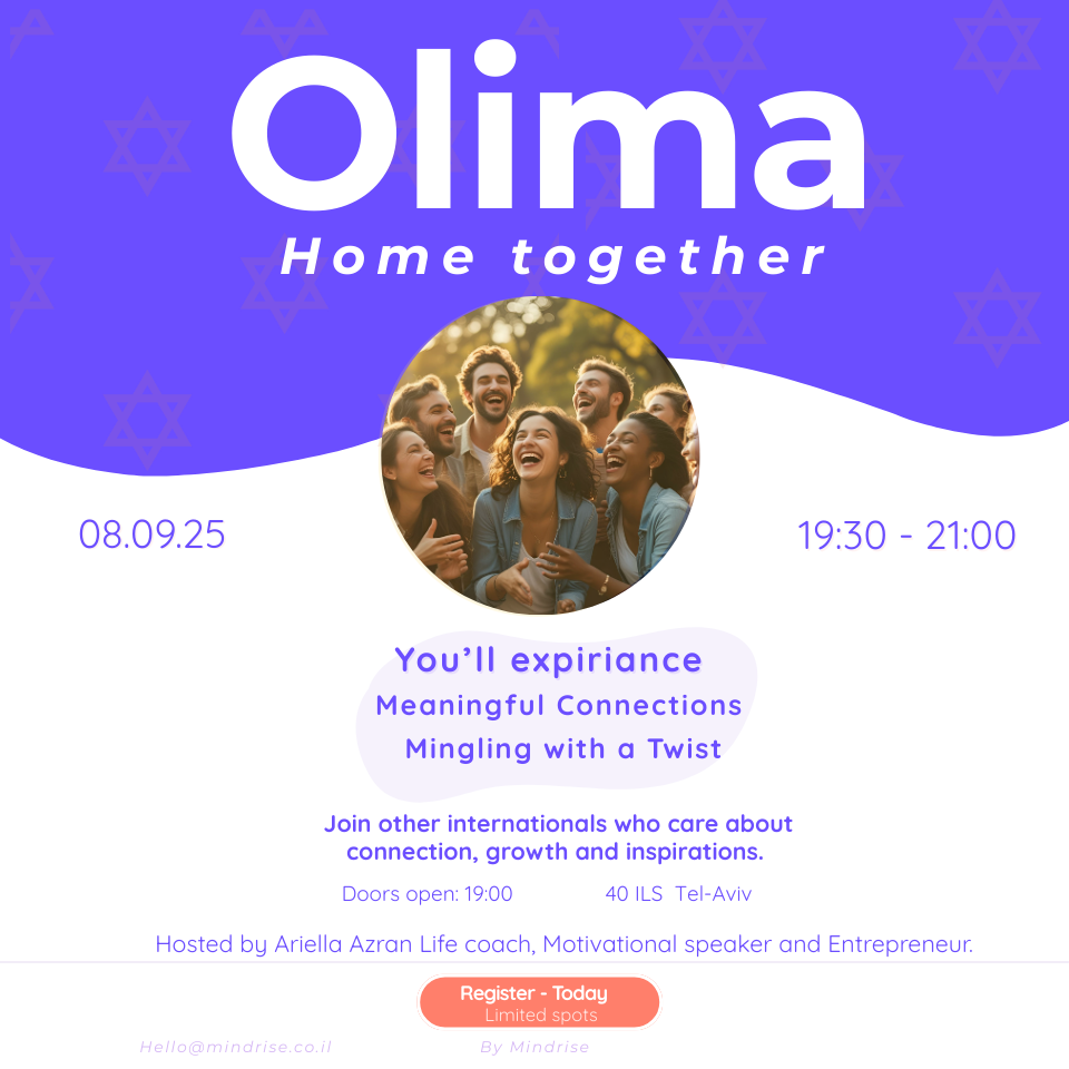 About Olima: Olima is a community for Olim and internationals in Israel who care about self-development, connection, and inspiration.