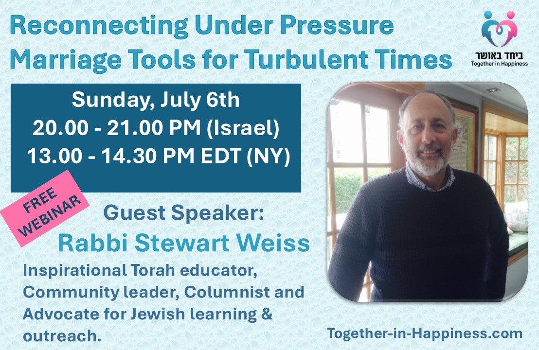 FREE Webinar organized by Nonprofit “Together in Happiness” with Guest Speaker Rabbi Stewart Weiss – Inspirational Torah Educator. Community Leader. Columnist. Jewish Learning & Outreach.