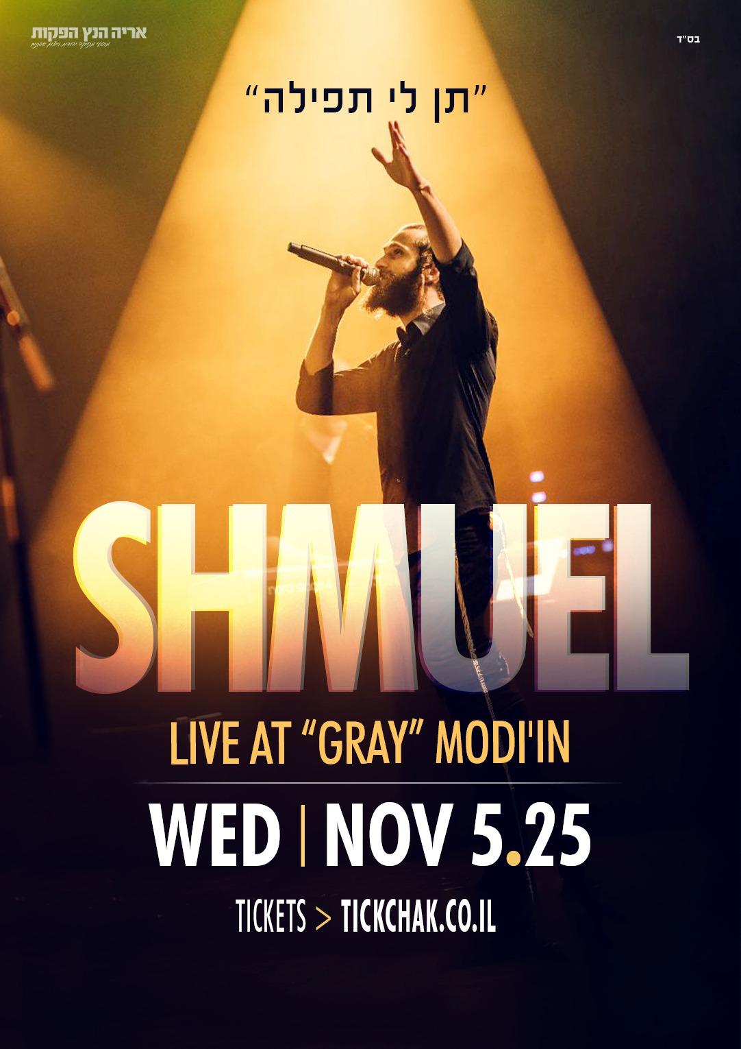 שמואל מגיע לגריי מודיעין עם הלהיטים הגדולים “תן לי תפילה”, “נקודות” ,”תעצרו את העולם”