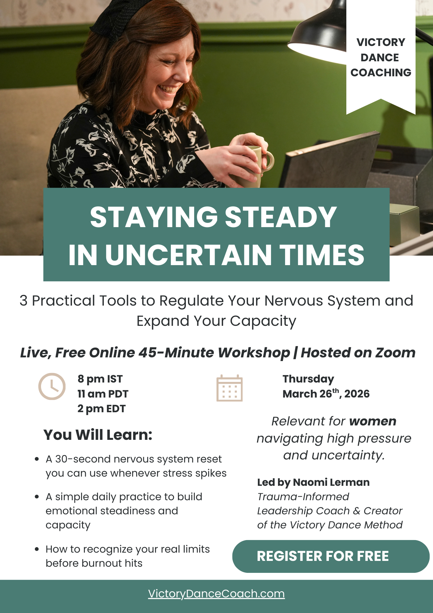 Led by Naomi Lerman, Trauma-Informed Leadership Coach and creator of the Victory Dance Method.
