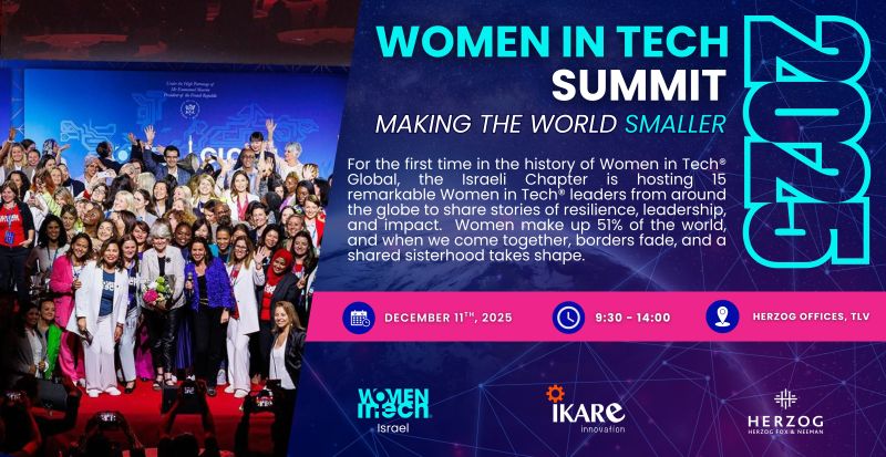 HAPPENING THURSDAY DECEMBER 11th! We’re excited to launch and share with you the Women in Tech Israel Summit 2025, a global gathering taking place on December 11 from 9:30 to 14:30. For the first time, the Israeli Chapter will host fifteen Women in Tech leaders from around the world who will bring stories of resilience, leadership, and impact 🌍. As women make up 51 percent of the world, this summit celebrates what happens when we come together, erase borders, and strengthen our shared sisterhood. Participants will gain insights from diverse cultures, discover different leadership journeys, and understand global trends shaping the lives of women today. The agenda includes a powerful opening keynote, three dynamic panels, an engaging workshop, and networking opportunities over lunch 🤝. Last year’s summit attracted more than 220 women from across Israel, and this year promises to be even more impactful. The event will be held in English and is designed to inspire, connect, and empower women at every stage of their professional path. To join us, please register through the WIT Hub at https://lnkd.in/dCrsz4N3. We extend our gratitude to our partners Herzog Law Offices and Ikare Innovation for helping bring this international summit to life.
