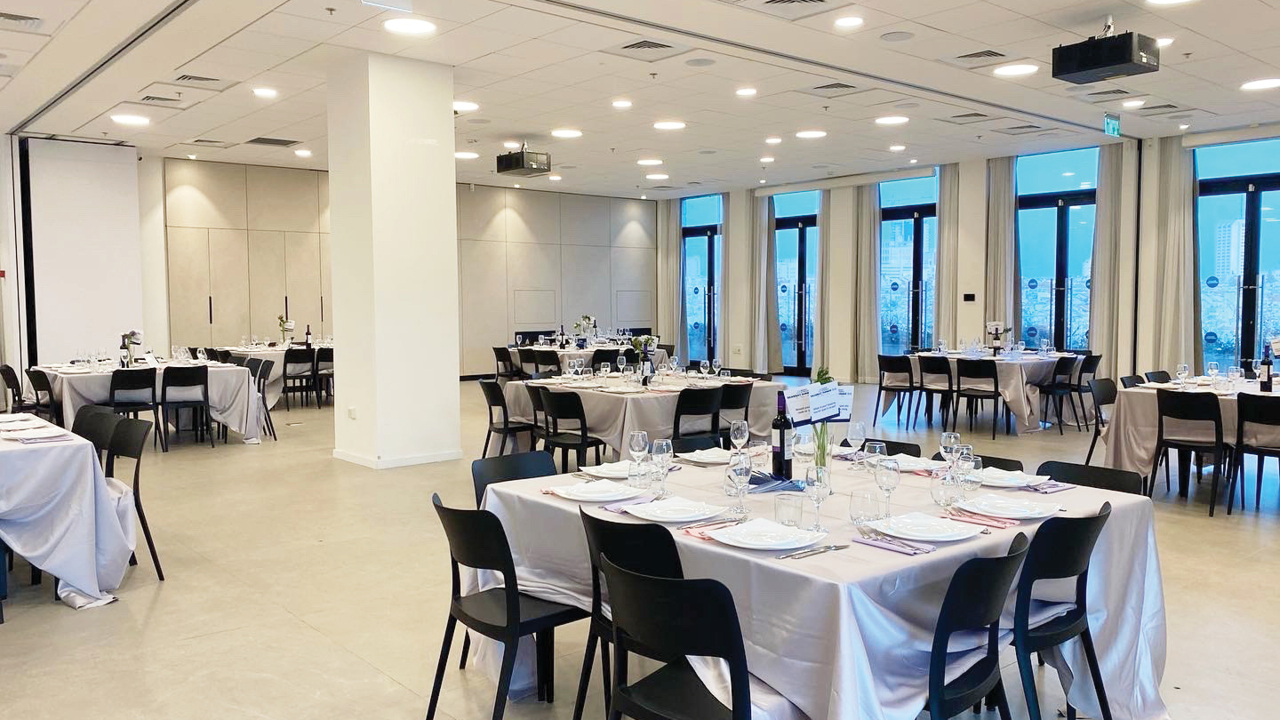 ממוקם בקומת הכניסה למבנה. ניתן להשתמש באולם כחלל אחד או לחלק אותו לעד 3 חללים עצמאיים, מבודדי רעש ובהם כל אמצעי המולטימדיה .