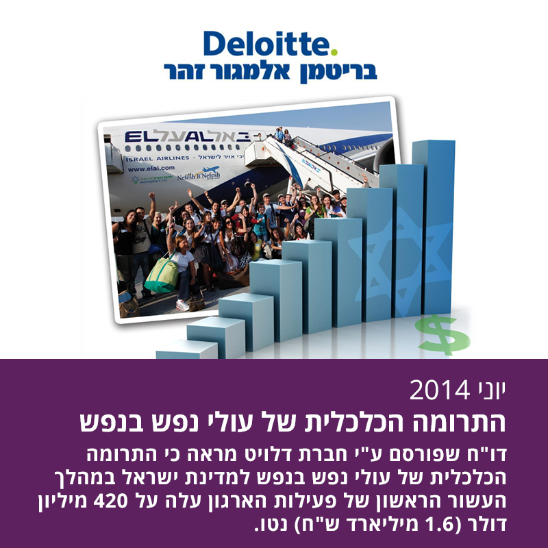 במטרה למדוד את הכדאיות הכלכלית  של ההשקעה בעלייה מצפון אמריקה מעבר למניעים הציוניים, ארגון "נפש בנפש" ביקש מחברת Deloitte לבנות מודל לניתוח התרומה הכלכלית של עולי “נפש בנפש” לכלכלת ישראל…