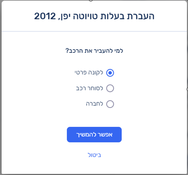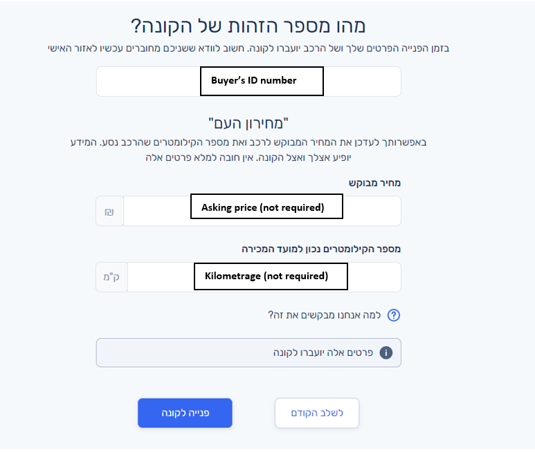 - Both the buyer and the seller must be Israeli citizens. If one or both are not, you will need to transfer the ownership in person in the Licensing Bureau.
