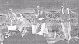 | At the end of their show,the Scouts sang "Hatikvah" while waving Israeli flags. |