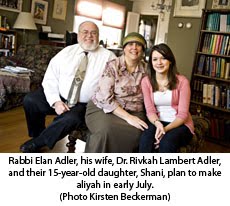 Little by little, the reasons for moving to Israel simply built up, he said. The final straw, according to Rabbi Adler and his wife, Dr. Rivkah Lambert Adler, was the decision of their daughter, Ariella, 19, to make aliyah this past September.